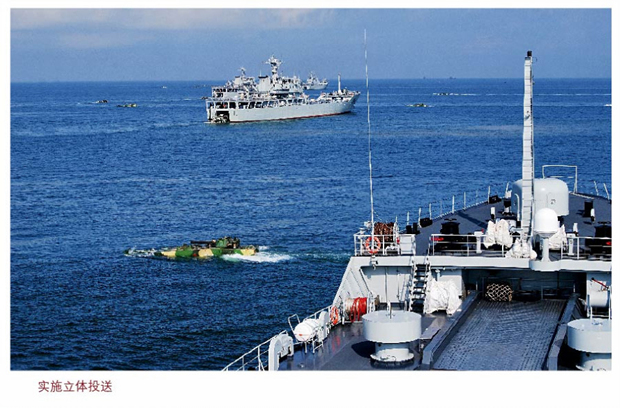 远航训练:拓展兵力输送海域 凌晨5时许,南海某海域,天空刚泛出鱼肚白。“井冈山”舰顺利抵达预定海域,随着艉门的徐徐打开,坞舱里的特战队员蓄势待发。“开始泛水!”随着指挥员一声令下,数百名陆战队员乘坐冲锋舟、橡皮艇,趁着夜色悄然驶向某“敌”占岛礁。